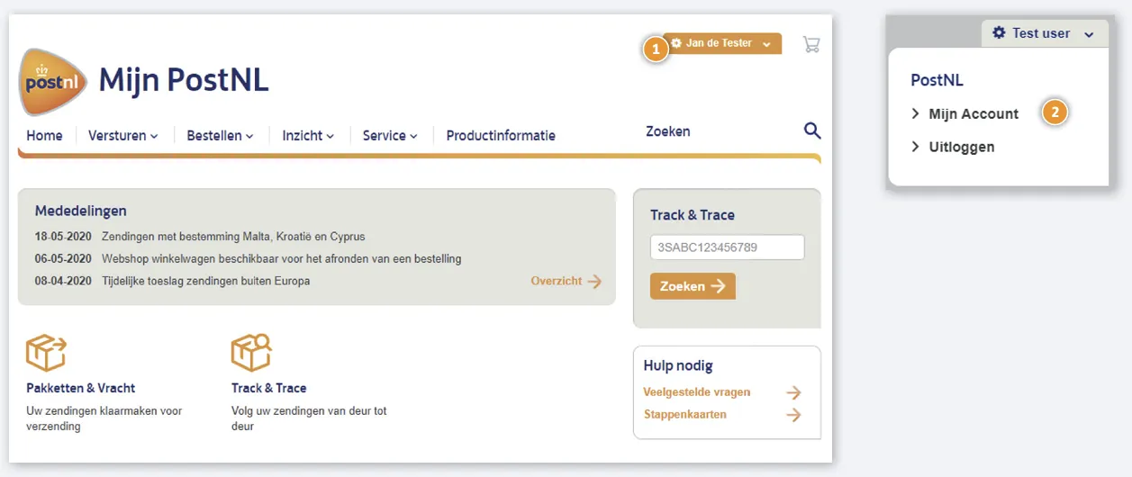 Once logged in, select your name (right top corner) and then select Mijn Account.