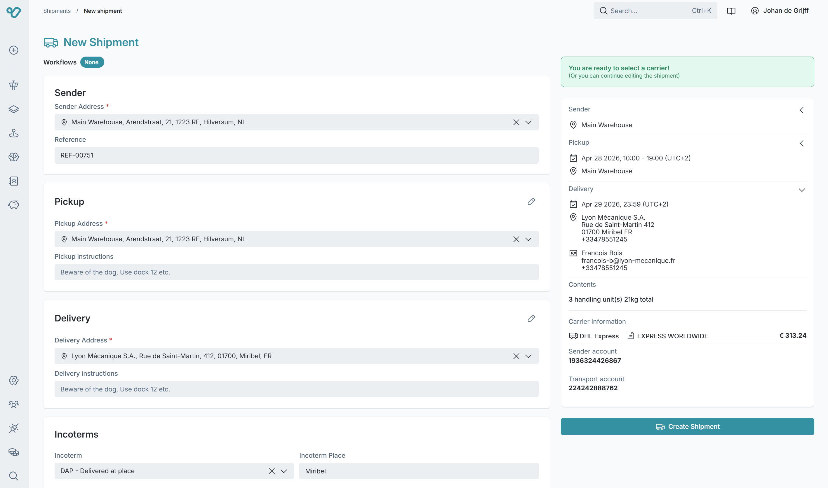 Shipment creation