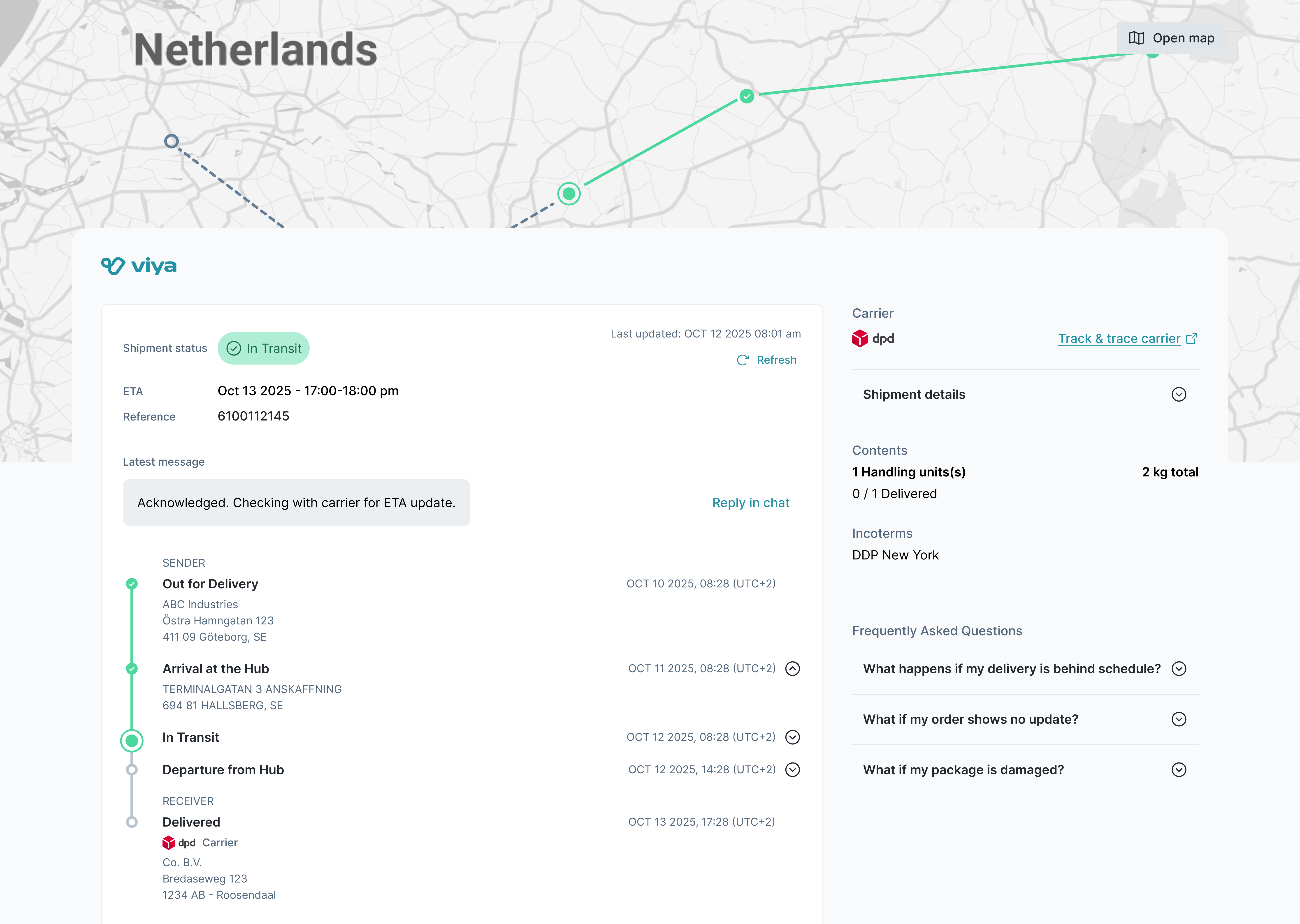 Provide customers with branded tracking links for full visibility without the need to log in or call support.